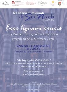 Venerdì 11 aprile (ore 20.30) “ECCE LIGNUM CRUCIS: La Passione del Signore nel repertorio gregoriano della Settimana Santa” con la Schola gregoriana “Giulio Cattin” dell’Istituto di Musica della Diocesi (direttore: Luca Cabianca).
