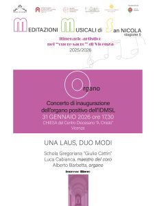 L’evento è inserito nella rassegna musicale “Meditazione Musicali di San Nicola – stagione 5”, organizzata da Istituto di Musica della Diocesi di Vicenza insieme a Museo Diocesano Vicenza, Unità Pastorale Centro Storico e Comitato Culturale di San Nicola.
